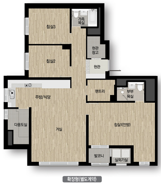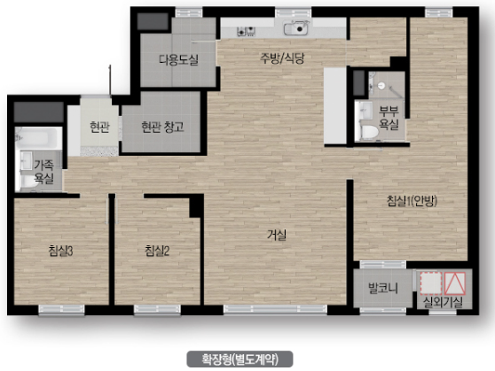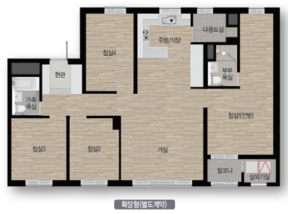 이번 청약에 나온 세대는 모두 발코니를 확장한 스타일로 확장형으로 타입을 확인하시면 됩니다.