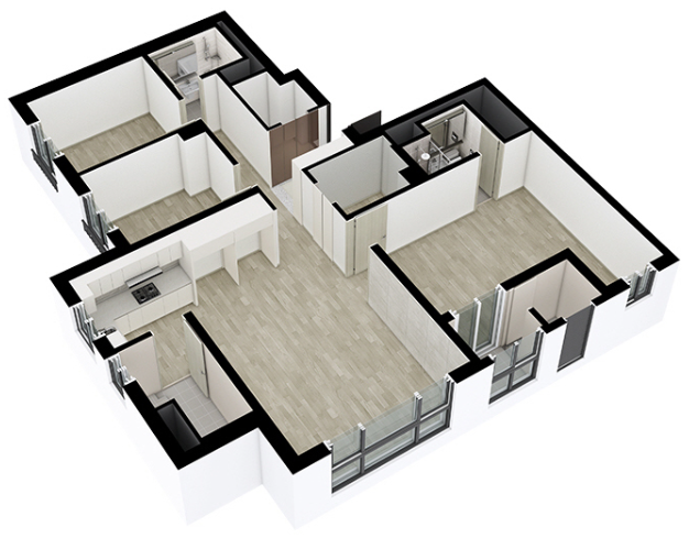 dmc 한강자이더헤리티지는 34평과 38평으로 이루어져 있으며 34평은 A, B, C의 세 개의 타입으로 나뉩니다.