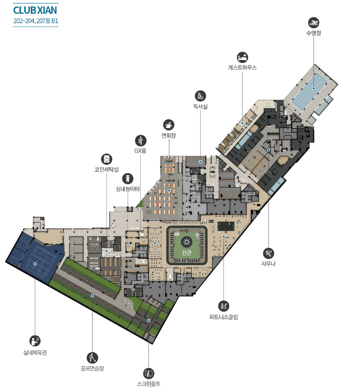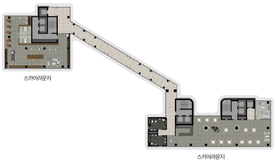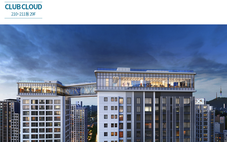 자이답게 커뮤니티 시설도 눈길을 끕니다. 수영장, 그리고 클럽 클라우드라는 스카이라운지와 동을 잇는 스카이브릿지가 참 멋있습니다.