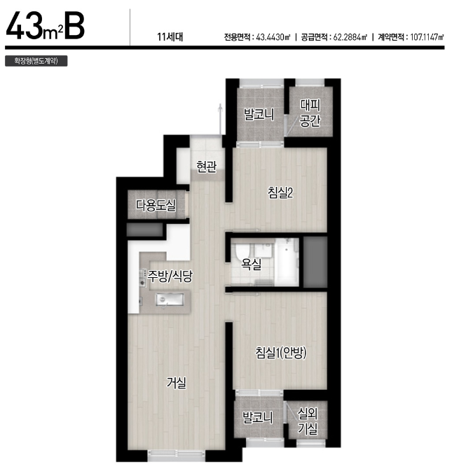 작은 평수인데도 구조가 잘 나온 편인 것 같습니다.