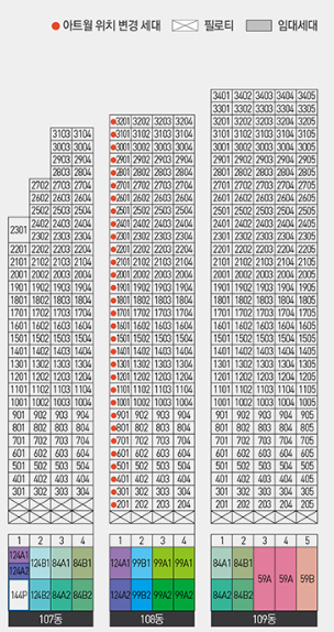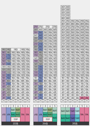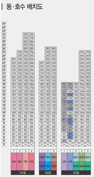 평형별 동, 호수가 어떻게 배치되어 있는지 보실게요.