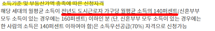 신혼부부 특별공급 청약 자격 소득 기준